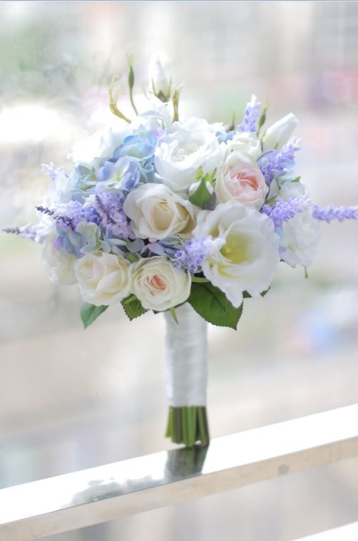 2019 Custom Wedding Bouquet White Bellflower Flower Rose Blue Hydrangea Elegant Bridal Bouquet Wedding Ceremony Flowers Wedding Church Flowers From